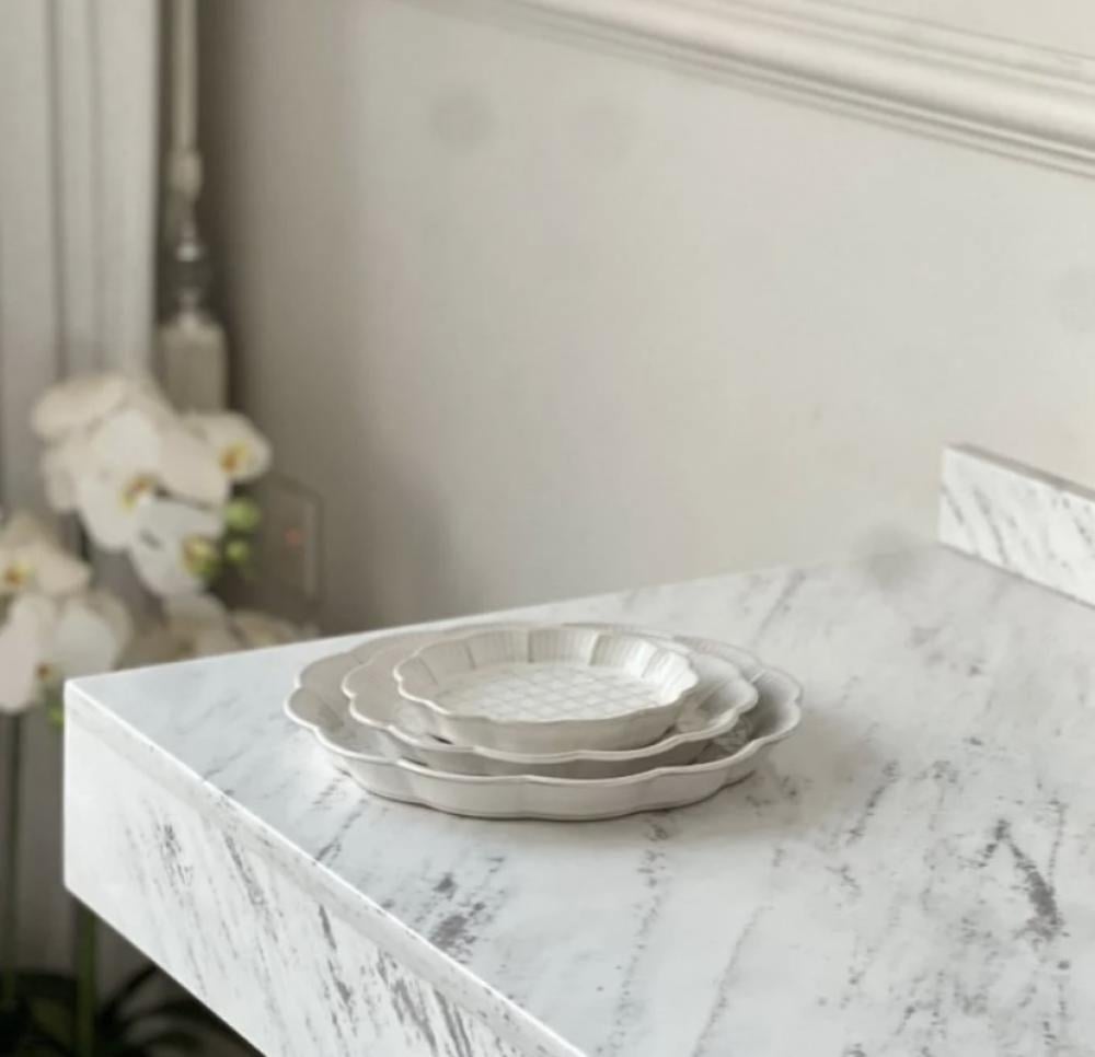 الكبير :القطر : 27 سم الارتفاع : 3 سمالوسط :القطر : 21.5 سم الارتفاع : 2.5 سمالصغير :القطر : 16 سم الارتفاع : 2.5 سم